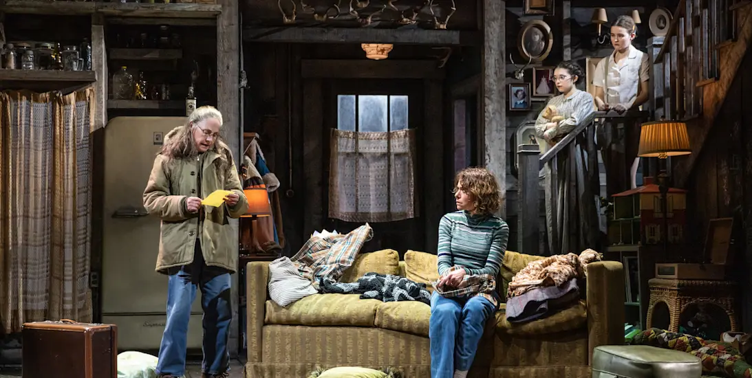 Photo credit: Laurie Metcalf, Tatiana Maslany, Alyssa Emily Marvin, and Millicent Simmonds in Grey House on Broadway. (Photo by MurphyMade)