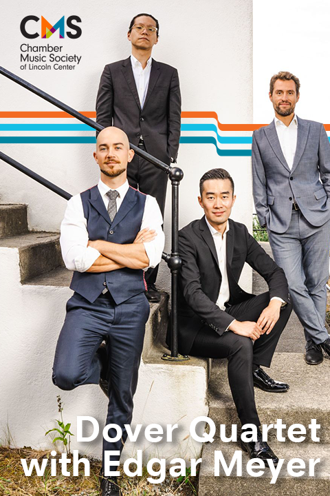 Formed at the Curtis Institute of Music, the members of the Dover Quartet count among their mentors some of the greatest musicians of our time, and the ensemble’s performances continue to combine the hallowed standards of string playing’s golden age with adventurous programming and appealing personal presence. Their program for CMS shows all their facets, and in addition, we are thrilled to present bassist Edgar Meyer in his own bass quintet, which received its first performance for CMS in 1996.
