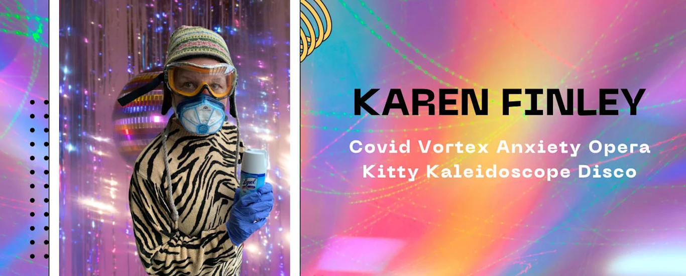 Karen Finley, a name synonymous with Performance Art, will tackle pandemic anxiety in her newest full length performance piece COVID VORTEX ANXIETY OPERA KITTY KALEIDOSCOPE DISCO. Join Finley as she reflects on our pandemic era traumas, politics, and world events, as well as our coping strategies to deal with isolation, loss, and a culture overwhelmed by anxiety. Finley looks back at a time of Zoom discos, bingeing on animal videos, and pandemic hobbies like baking. This look back while trying to look forward to reimagine a new future creates the framework for this passionate, vulnerable, and often comical new work.