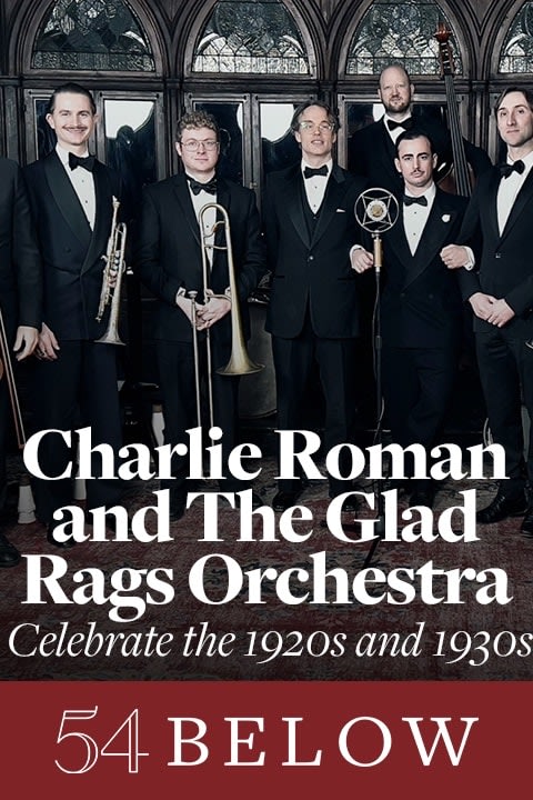 Charlie Roman and his Glad Rags Orchestra are proud to bring their celebration of 1920’s and 30’s popular dance band music to 54 Below! Led with vocals by Charlie Roman and conducted by saxophonist Gabriel Evan, Glad Rags will delight your hearts and ears with romantic and enchanting melodies from popular music of the Golden Era. From up-tempo hot jazz numbers, to heart melting vocals to songs like “Midnight, The Stars and You,” Glad Rags will transport you to a time of elegance and musical sophistication you never knew you were missing.