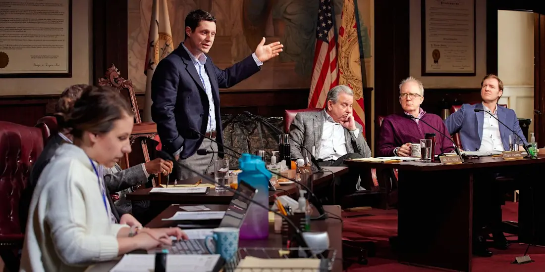 All audiences attending town council meetings in Big Cherry — that is, Broadway performances of The Minutes — will still be required to wear masks in the theatre for the rest of the show's Broadway run. This announcement comes after the Broadway League made audience masking optional at Broadway theatres beginning July 1.